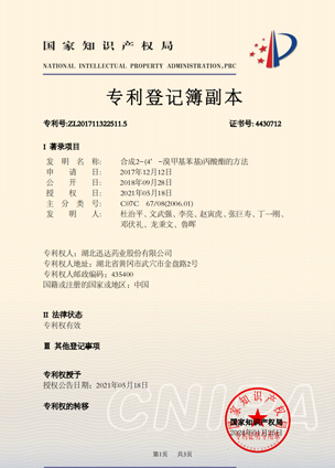 公司擁有一支高素質(zhì)科研隊(duì)伍,具備專業(yè)而高效的研發(fā)能力。近幾年,共取得科技成果30項(xiàng),其中9項(xiàng)獲國家發(fā)明專利,2項(xiàng)獲湖北省科技進(jìn)步獎(jiǎng),開發(fā)新產(chǎn)品8個(gè),綠色合成、手性合成和催化等技術(shù)引領(lǐng)行業(yè)發(fā)展。主要銷往歐美、日本、韓國、中東、印度等40多個(gè)國家和地區(qū)。